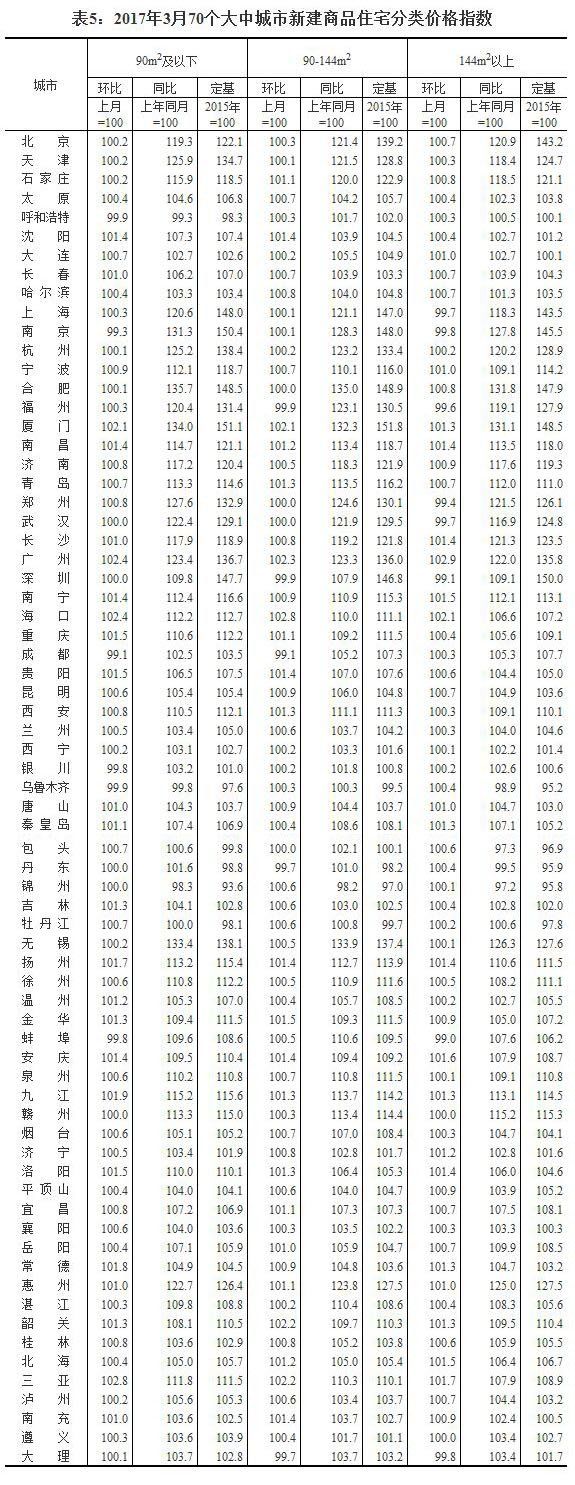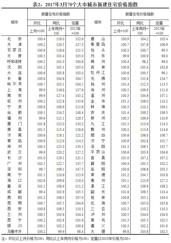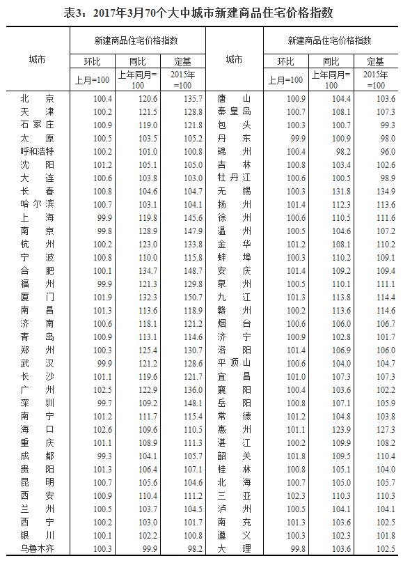 2017年3月份70個大中城市住宅銷售價格變動情況