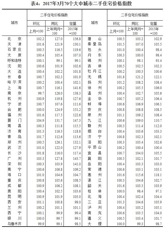 3、調(diào)查方法。70個大中城市的新建住宅銷售價格、面積、金額等資料直接采用當?shù)胤康禺a(chǎn)管理部門的網(wǎng)簽數(shù)據(jù)。二手住宅銷售價格調(diào)查為非全面調(diào)查,采用重點調(diào)查和典型調(diào)查相結(jié)合的方法,按照房地產(chǎn)經(jīng)紀機構(gòu)上報、房地產(chǎn)管理部門提供與調(diào)查員實地采價相結(jié)合的方式收集基礎(chǔ)數(shù)據(jù)。